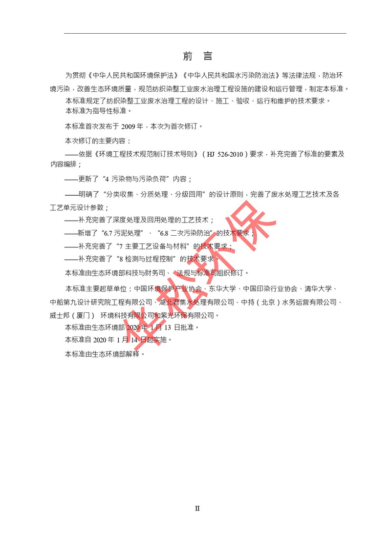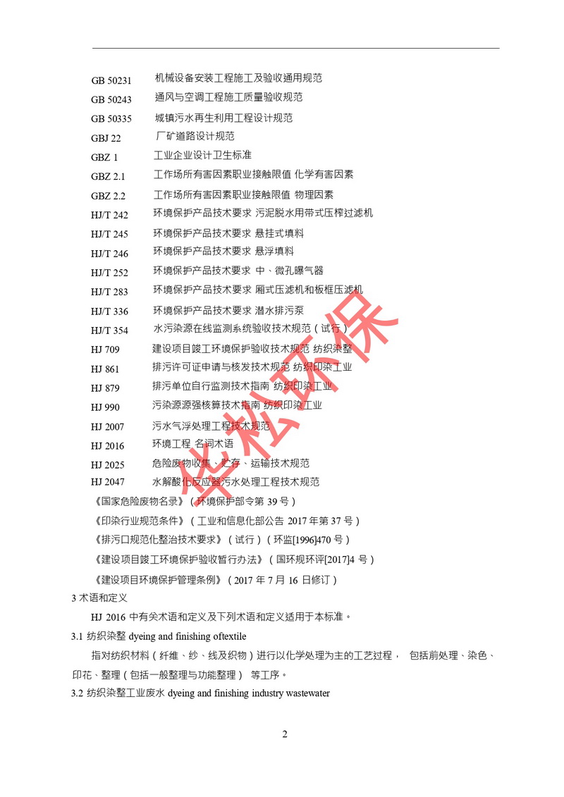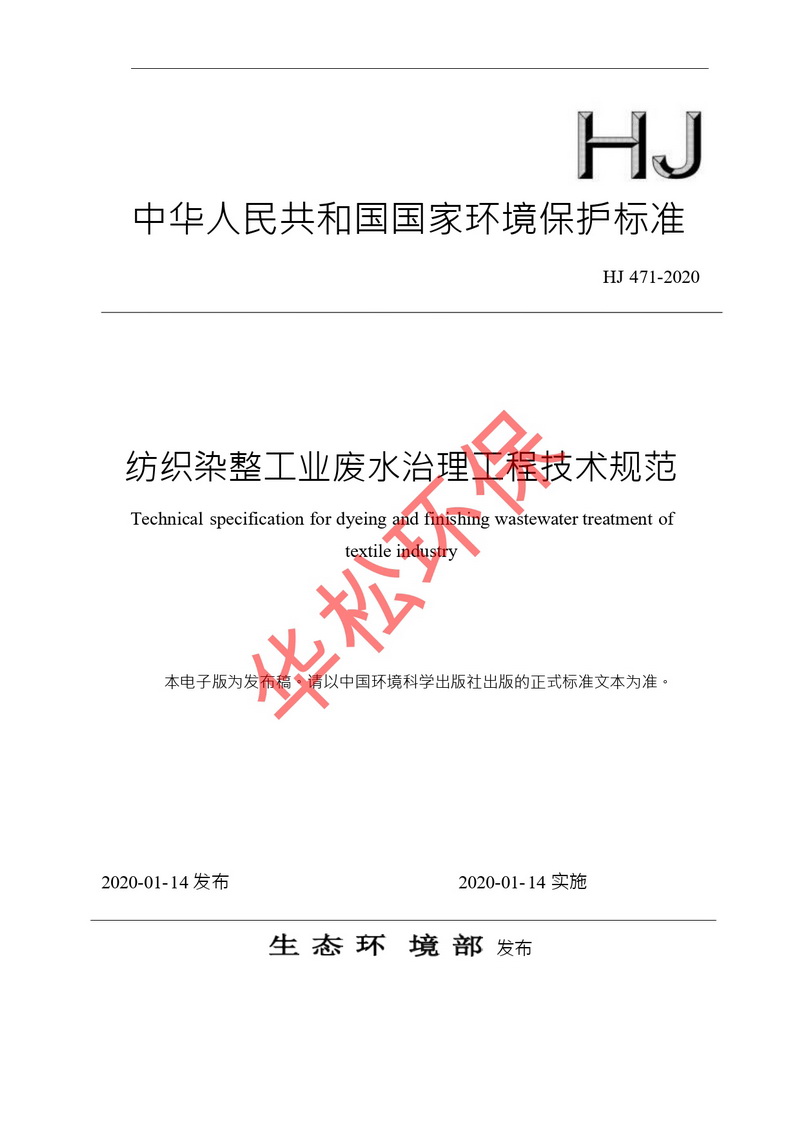 紡織染整工業廢水治理工程技術規范(HJ471-2020)